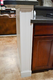 See that gap on the corner of the island where he nailed the beadboard? That's how crooked that little wall is. Thankfully we put a corner piece to hide that little space.