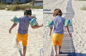 Navy's very first time touching his sweet little toes to the sand. He didn't seem to mind.